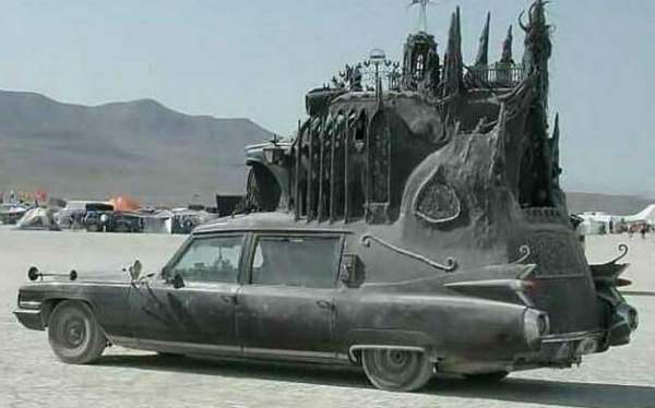 "Count Orlok mobile. The Mad Max movies called, they want their setpiece back. This is what cartoon villain drives so that the child audience knows how evil they are. Despicable Me ass car"