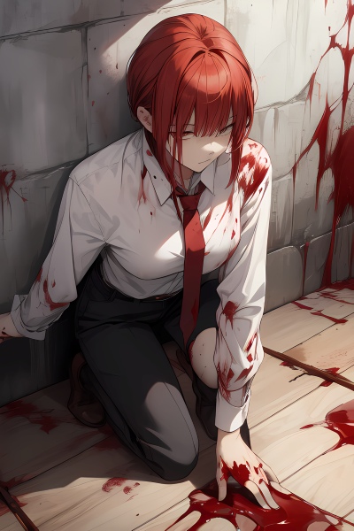 She had stopped him from losing any more blood, but he already lost too much. She ripped the forks out of his eyes and threw them to the side. She turned him over so that he was lying on his front, face down on the floor. She ran to the kitchen and grabbed a straw, cutting it into 2 short pieces with scissors and then returning to the bloody livingroom. She stood each straw section upright on the floor beneath his face, so that they stood between the floor and his eyes, touching both. She made sure to follow the scientifically and medically accurate way of dealing with such an event. Once the straws were connecting his eyes to the floor, it was time for the re-bloodification step.