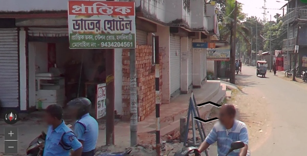 "The jungle and tuktuk tells us the continent. The writing on the sign narrows it down to 2 countries. The sign has the same colours of one of those countries' national flag, which probably eliminates the other. This is consistent with the rubble on the ground. To get it more specific, the writing has a letter which is basically a triangle, which is found in the country we ruled out and some cities along the border. That's enough to guess"