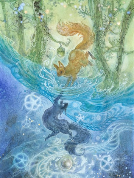 "This is The Happy Squirrel by Stephanie Law. She paints lots of very mystical and nature themed works, very nice to look at! She even has her own deck of tarot cards, which definitely fits the vibe"