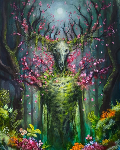 "This is Return Of The Old Gods, painted by Zack Dunn. He paints really cool skeletons overgrown with moss and plant life, like this one for example. Very magical"